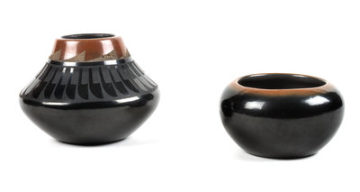Dora Tse Pe (San Ildefonso b. 1939) Two Brown on Black Bowls