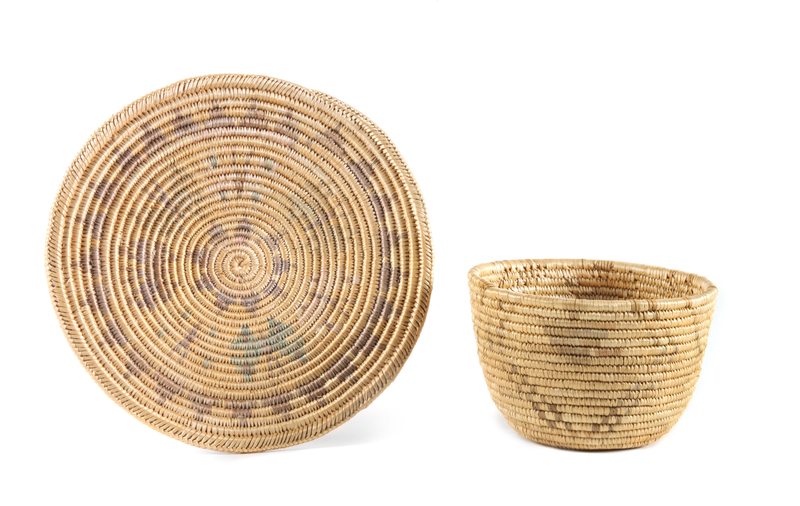 with butterfly design, together with a small California basket.