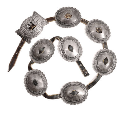 having seven stamped oval conchos and butterfly form buckle.