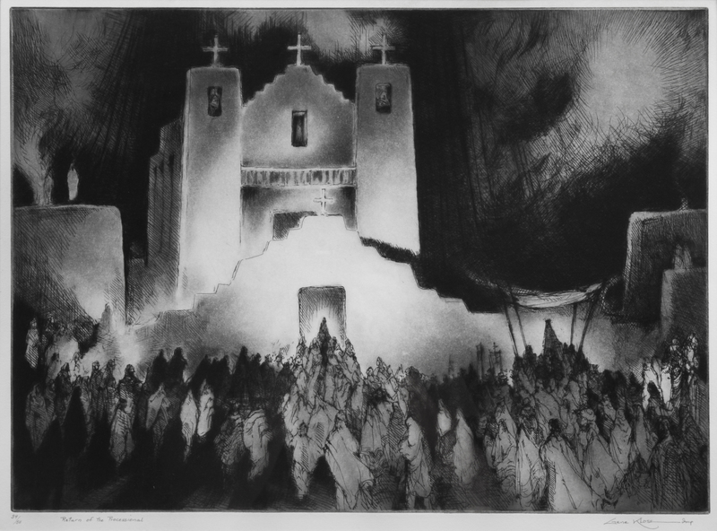 Return of the Processional, etching/drypoint/aquatint, edition 34/50, signed Gene Kloss (lower right)
