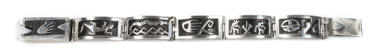 Gene Pooyouma (Hopi, 20th Century) Silver Overlay Storyteller Link Bracelet