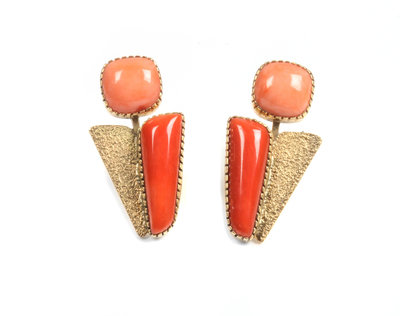Gail Bird (b. 1949) and Yazzie Johnson (b. 1946), Pair of 18 Karat Yellow Gold and Coral Earclips