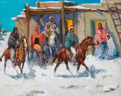 Leaving in the Morning, oil on canvas, signed Stiha (lower right)