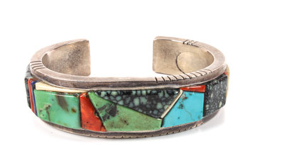 David Tune (Dine/ Creek, b. 1955) Silver and Multi Gem Cuff Bracelet