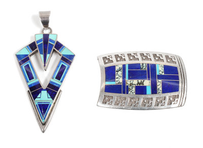 Southwestern Silver, Lapis and Turquoise Pendant and Belt Buckle, Knifewing Segura/ Ray Tracey