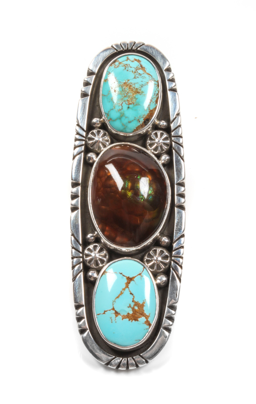 Edison Begay (Dine, b. 1954) Silver, Turquoise and Fire Agate Ring