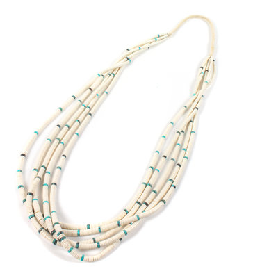 Five Strand White Shell and Turquoise Necklace
