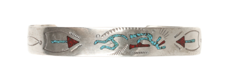 Navajo Silver, Turquoise and Coral Chip Inlay Bracelet