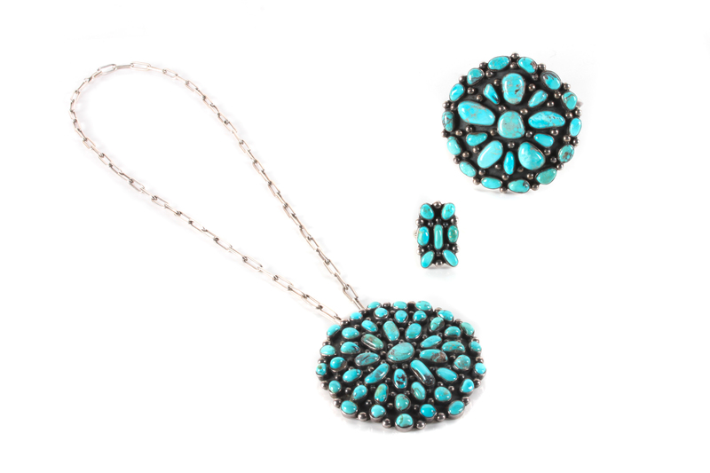 Southwestern Silver and Turquoise Bracelet, Pendant and Ring
