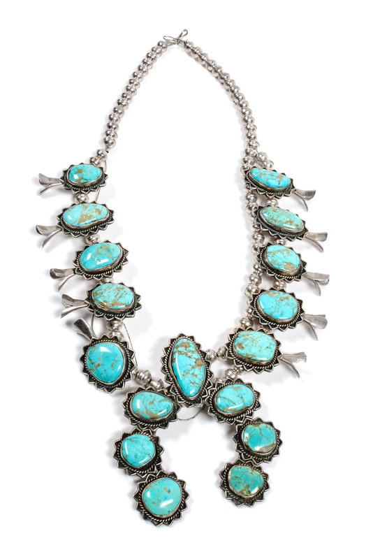 Southwestern Silver and Turquoise Squash Blossom Necklace