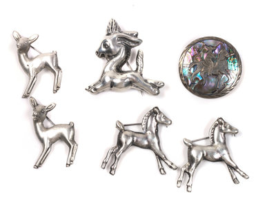 Six Mexican Silver Brooches