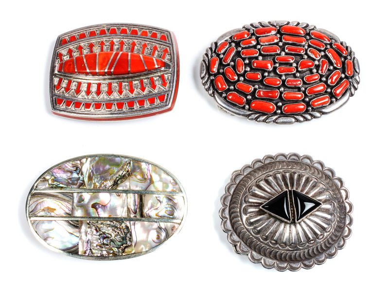 one marked S. Chavez, the other marked Vernon Haskje; together with a silver and onyx buckle and a Mexican silver and mother of pearl belt buckle.