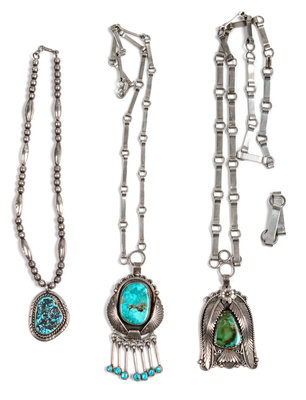 Three Southwestern Silver and Turquoise Necklaces