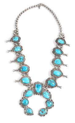 Southwestern Silver and Turquoise Squash Blossom Necklace