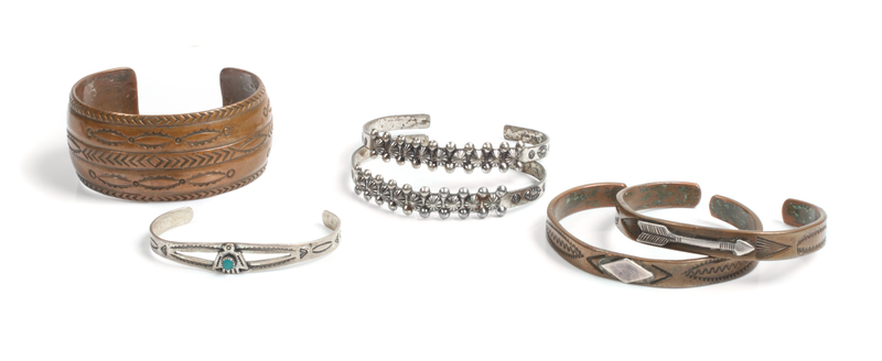 including a Fred Harvey style child's bracelet and three copper bracelets.