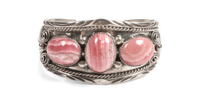 Southwest Style Silver and Rhodocrosite Cuff Bracelet