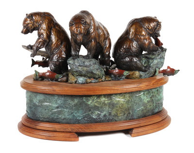 Brooks Falls, bronze and glass, edition 49, signed Daniel Parker, 97 (base)