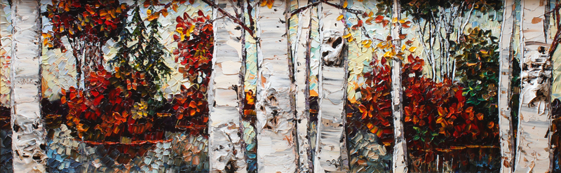 Among the Trees, acrylic on canvas, signed Eventov (lower center)
