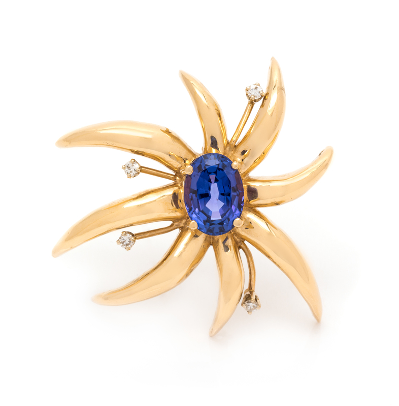 A Yellow Gold, Tanzanite and Diamond Starburst Brooch,