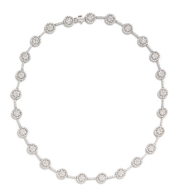 consisting of 25 circular diamond clusters within diamond surrounds containing 650 round brilliant cut diamonds weighing approximately 6.50 carats total.Stamp: 14K D10.00.