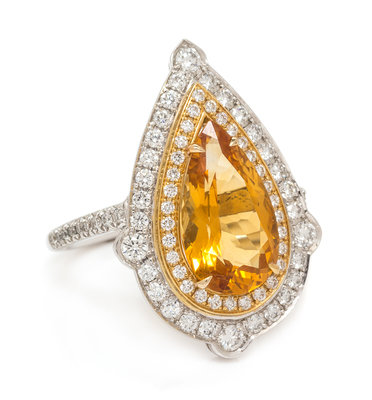 An 18 Karat Bicolor Gold, Citrine and Diamond Ring,