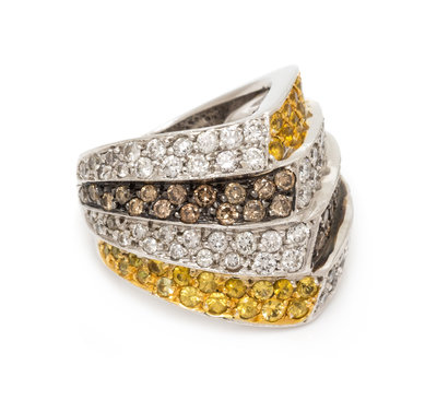 An 18 Karat White Gold, Diamond and Colored Diamond Ring,