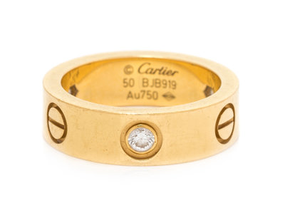 An 18 Karat Yellow Gold and Diamond 'Love' Ring, Cartier,