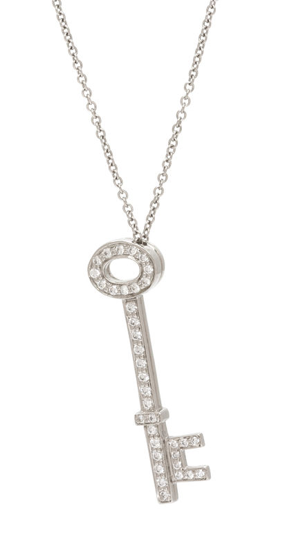 A Platinum and Diamond Key Pendant/Necklace, Tiffany & Co.,