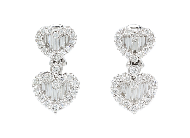 A Pair of 18 Karat White Gold and Diamond Heart Motif Earclips,