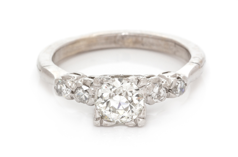containing one old European cut diamond weighing approximately 0.95 carat and four round single cut diamonds weighing approximately 0.16 carat total, with a later expandable white gold shank.