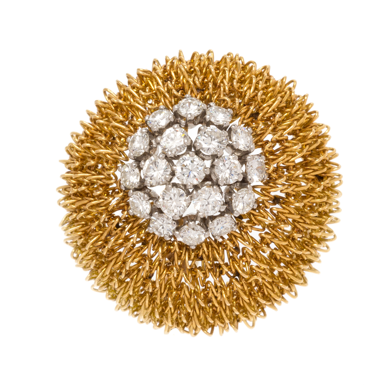 An 18 Karat Yellow Gold, Platinum and Diamond Domed Brooch, Van Cleef & Arpels,