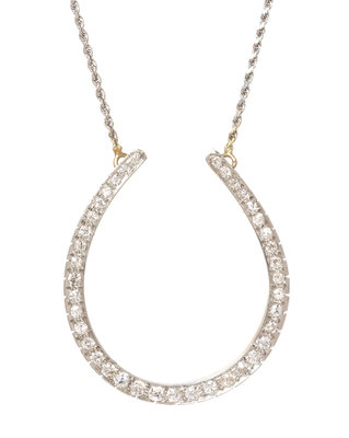 An Edwardian Platinum Topped Rose Gold and Diamond Horseshoe Necklace,