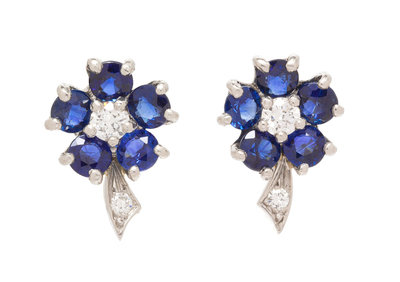 A Pair of Platinum, Sapphire and Diamond Flower Cluster Earclips, Oscar Heyman & Brothers,