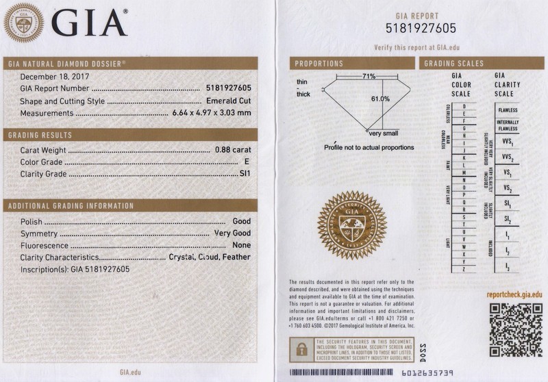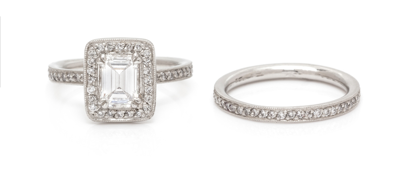 consisting of a ring containing one octagonal step cut diamond weighing 0.88 carat and numerous round brilliant cut diamonds weighing approximately 0.40 carat total, together with an eternity band containing 50 round brilliant cut diamonds weighing approximately 0.26 carat total.Stamp: 950 PLAT.Accompanied by a Gemological Institute of America diamond grading certificate number 5181927605, dated December 18, 2017, stating Color: E, Clarity: SI1, Polish: Good, Symmetry: Very Good, Fluorescence: None.