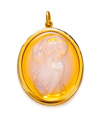 A Lalique Pink Opalescent Clemence Lady Cameo Pendant,