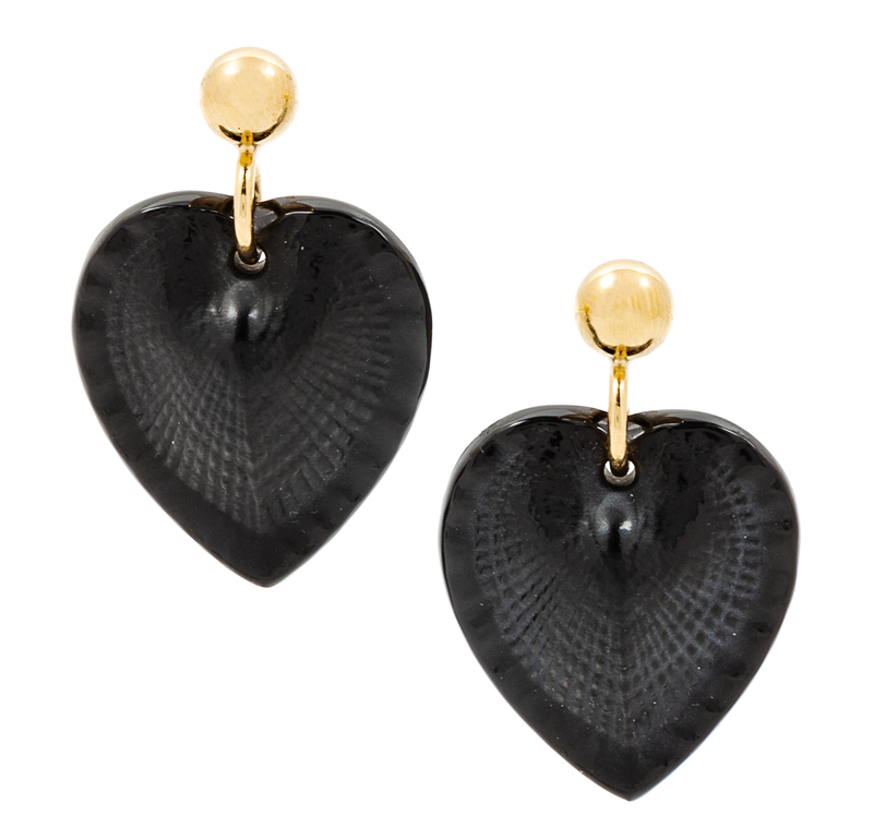 A Pair of Lalique Black Satin Finish Heart Earrings,