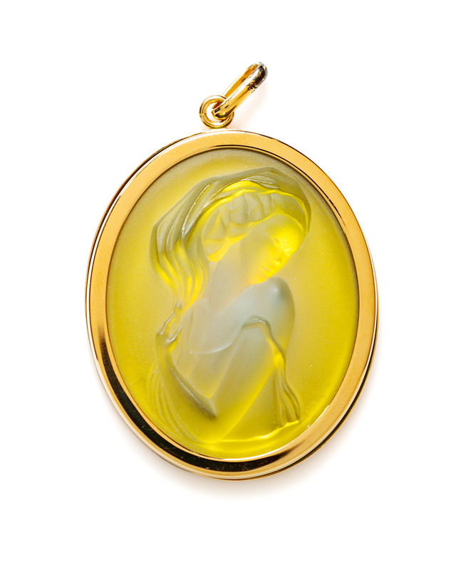 A Lalique Yellow Opalescent Clemence Lady Cameo Pendant,