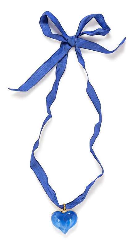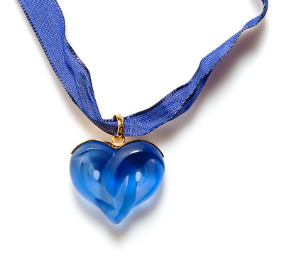 A Lalique Blue Knotted Heart Pendant Necklace,