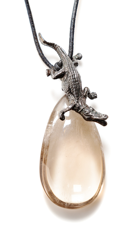 A Stephen Dweck Sterling Silver Vintage Alligator and Crystal Pendant Necklace,