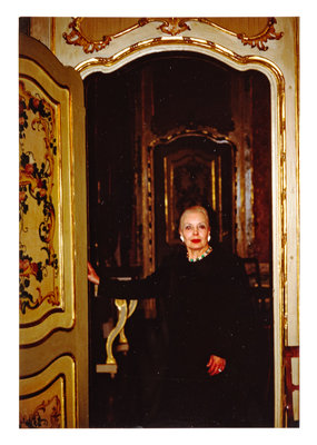 comprised of a goldtone choker with square glass stones, rhinestone links and a hidden clasp; together with a matching pair of oval earrings. Together with boxes and a photograph of Audrey Morris wearing the necklace.Necklace stamped: Ciner.