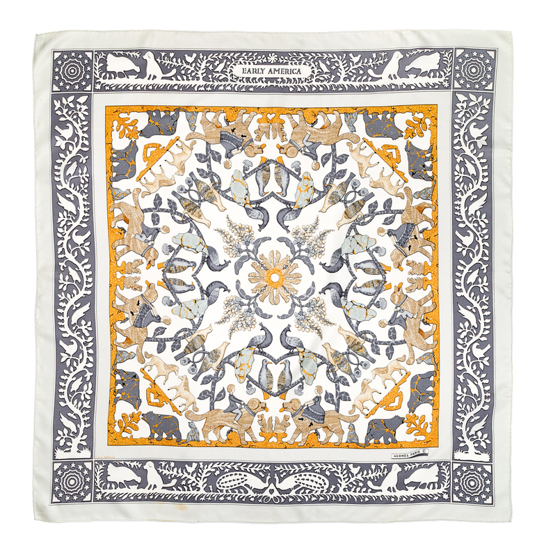 "Early America" pattern by Franoise de La Perrire. Labeled within the print: Herms.