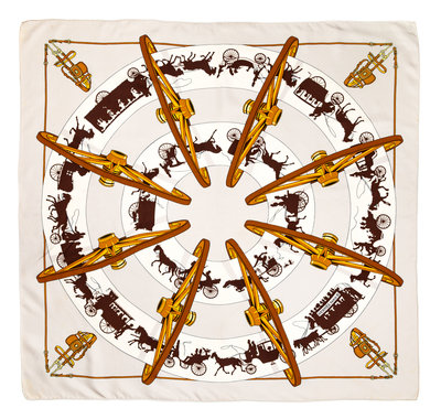"Paris qui Roule" pattern, designed by Hugo Grygkar. Labeled within the print: Herms.
