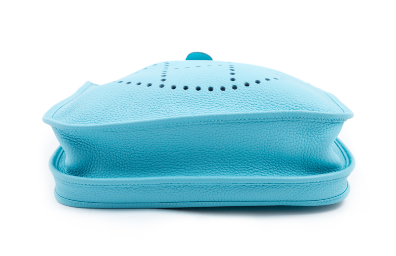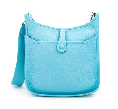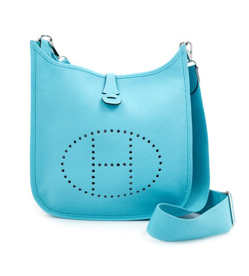 2015,with silver and palladium hardware, unlined, an outside slip pocket, a leather tab closure, a perforated leather H plaque and an adjustable canvas and leather strap. T blindstamp. Together with box, bag and strap dust bags.Stamped: Herms.