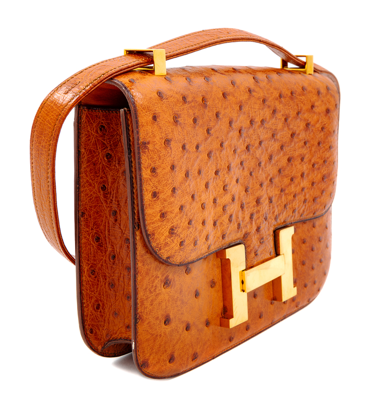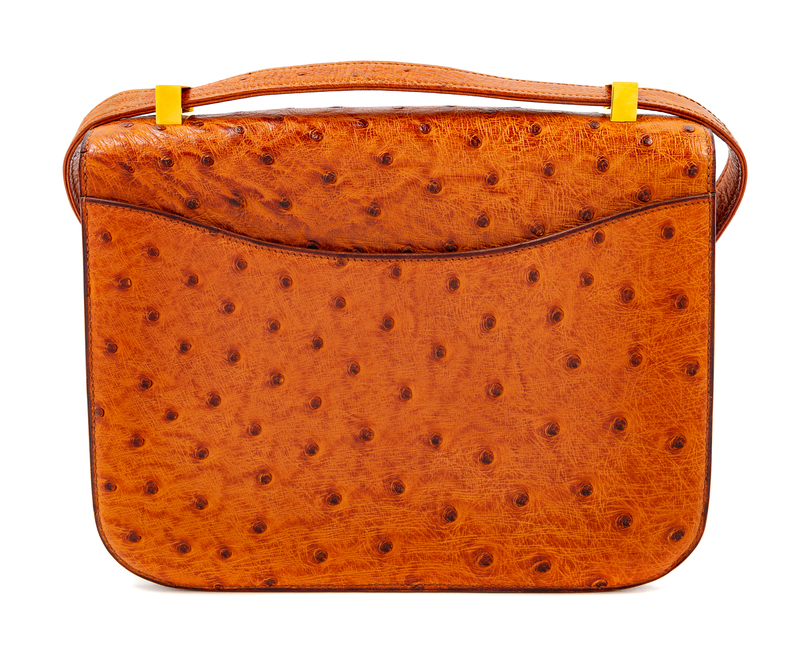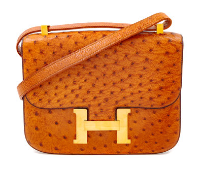 An Herms Cognac Ostrich Constance Bag,