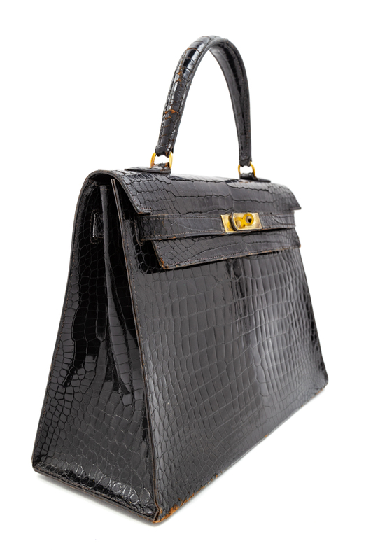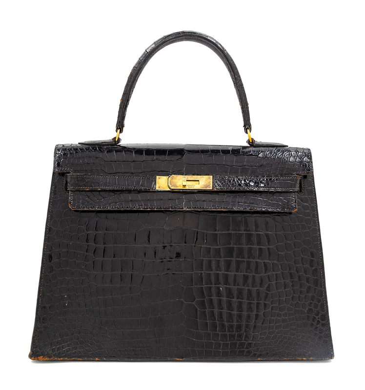 An Herms Vintage Black Crocodile Kelly Bag,