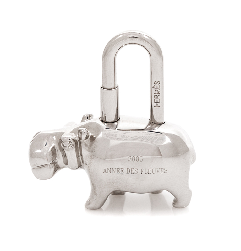 An Herms Palladium Plated Hippopotamus Cadena Lock Charm,