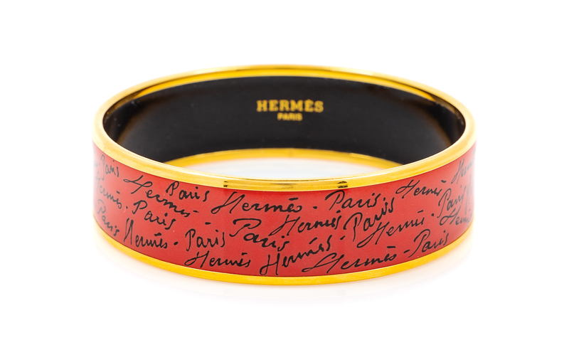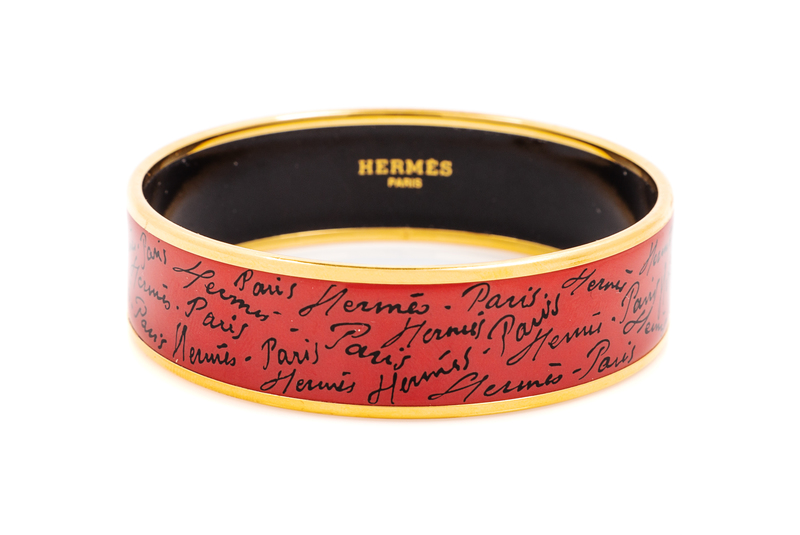 with gold plated rims and the "Hermes" and "Paris" script motif. Made in Austria, I stamp.Stamped: Herms.