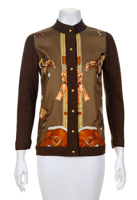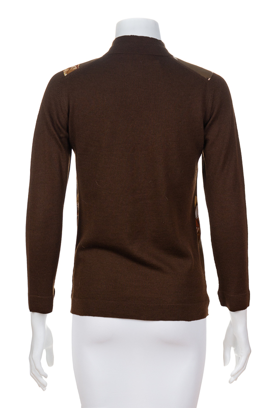 An Herms Dark Brown Wool Sweater with Silk Front,