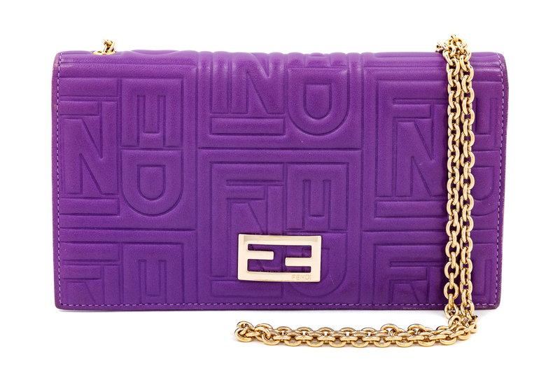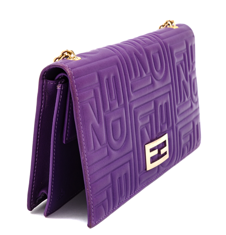 A Fendi Purple Monogram Embossed Leather Wallet/Shoulder Bag,