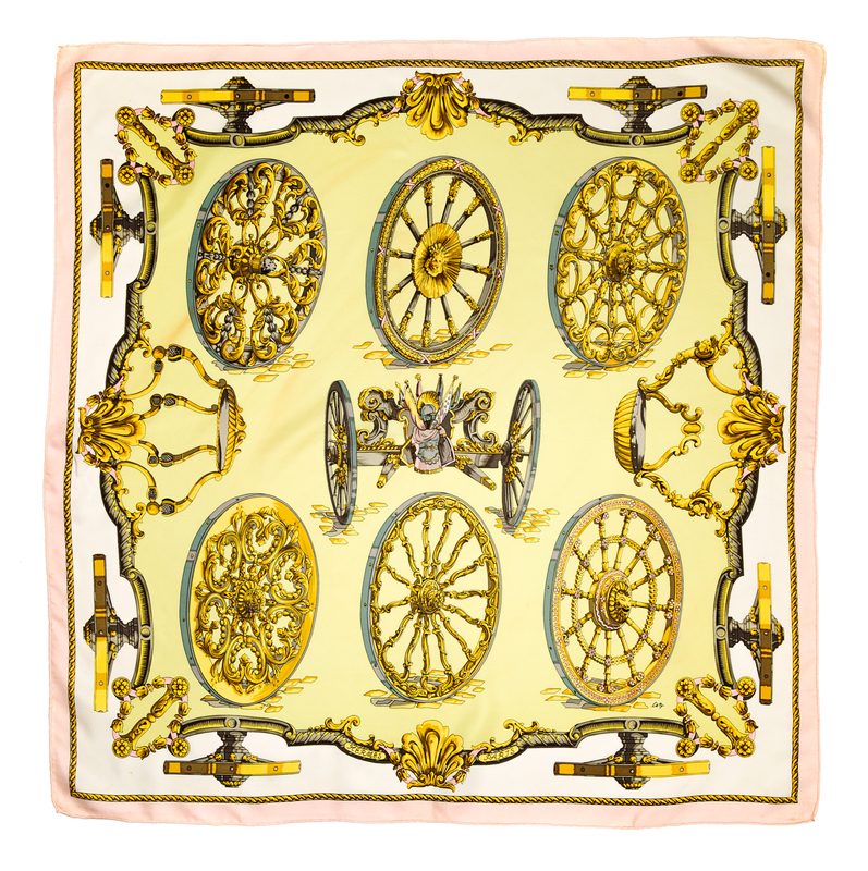 "Roues de Canon" pattern, designed by Caty Latham. Labeled within the print: Herms.